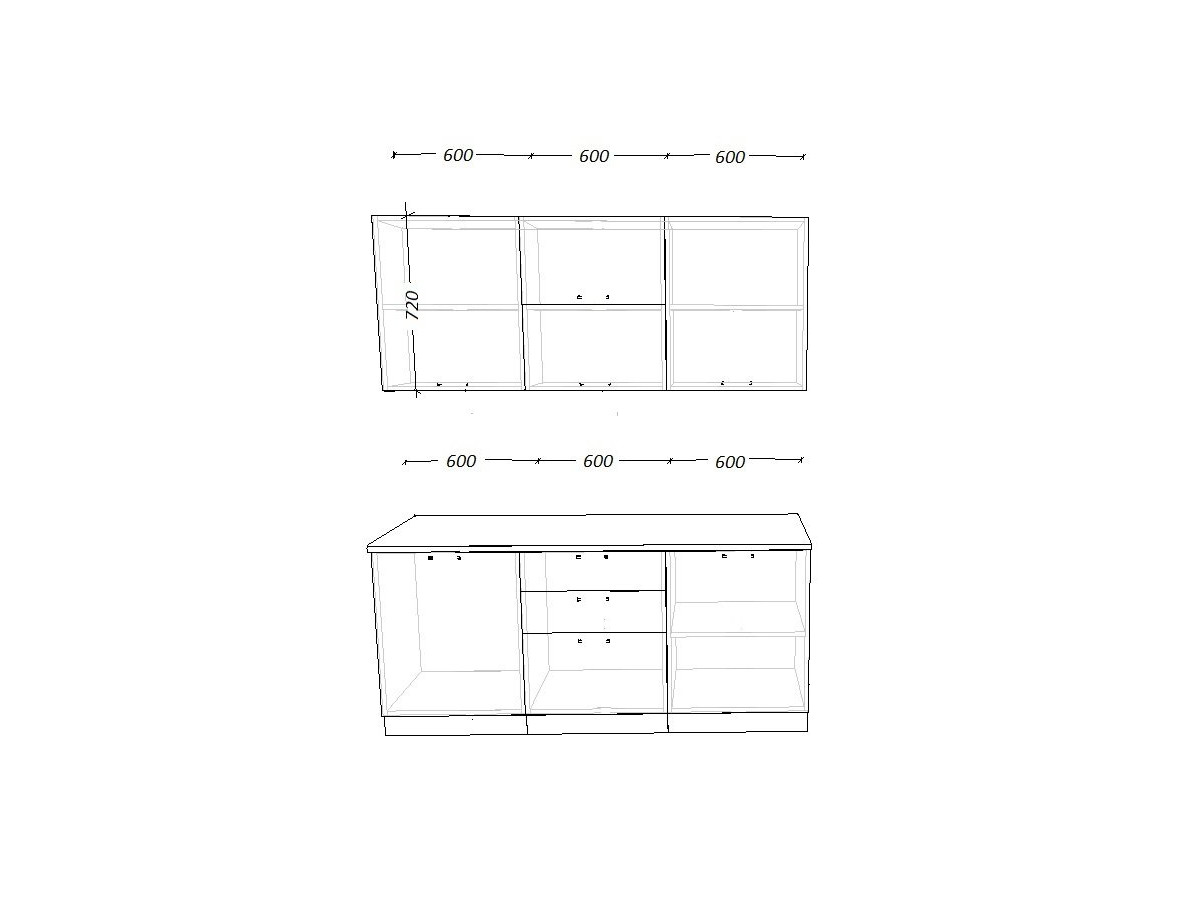 Кухонная мойка, стеновая панель, посудосушитель, планки для столешницы в комплект не входят.