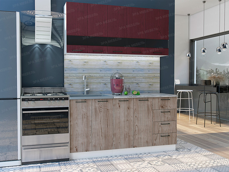 - Кухонный гарнитур Астра МДФ 1600 красное дерево патина/дуб галиано