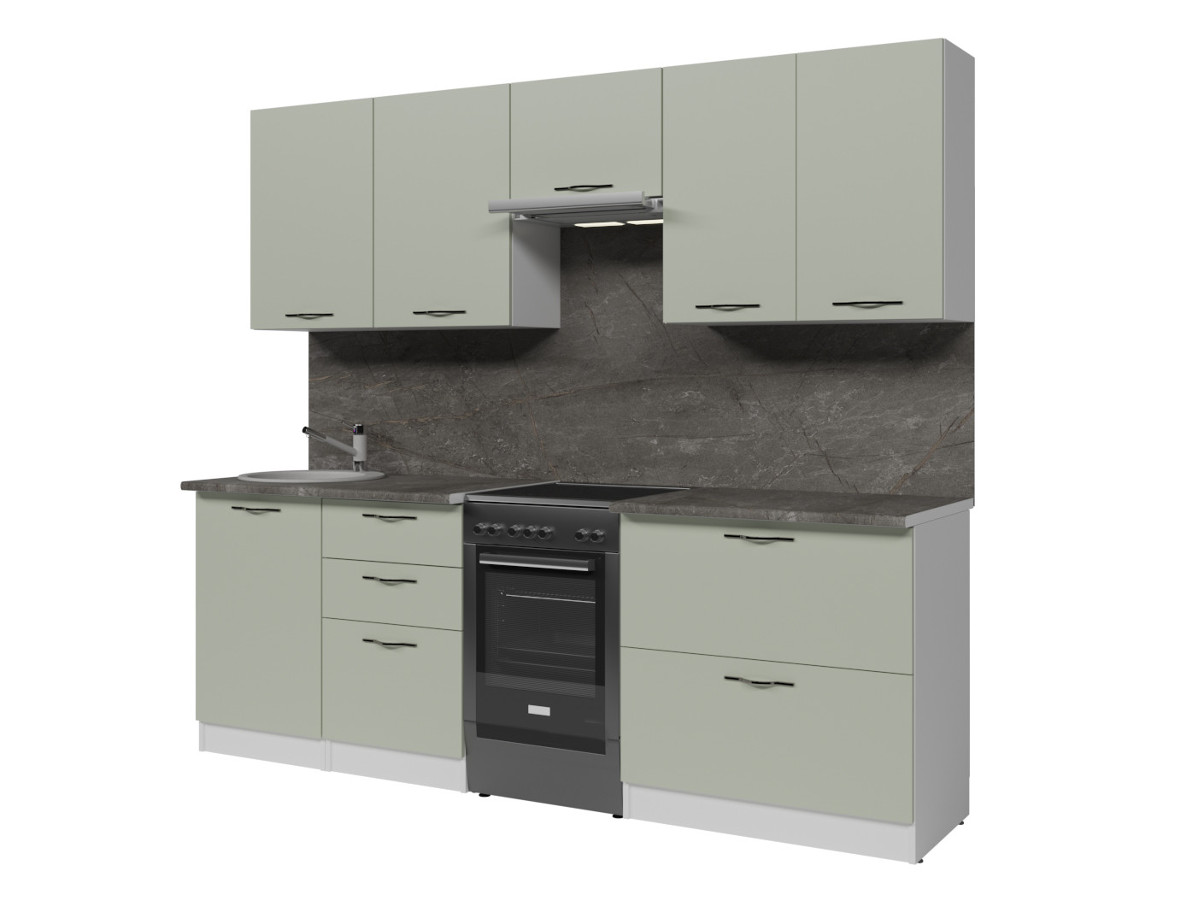Мойка, смеситель, стеновая панель и посудосушитель в комплект гарнитура не входят.