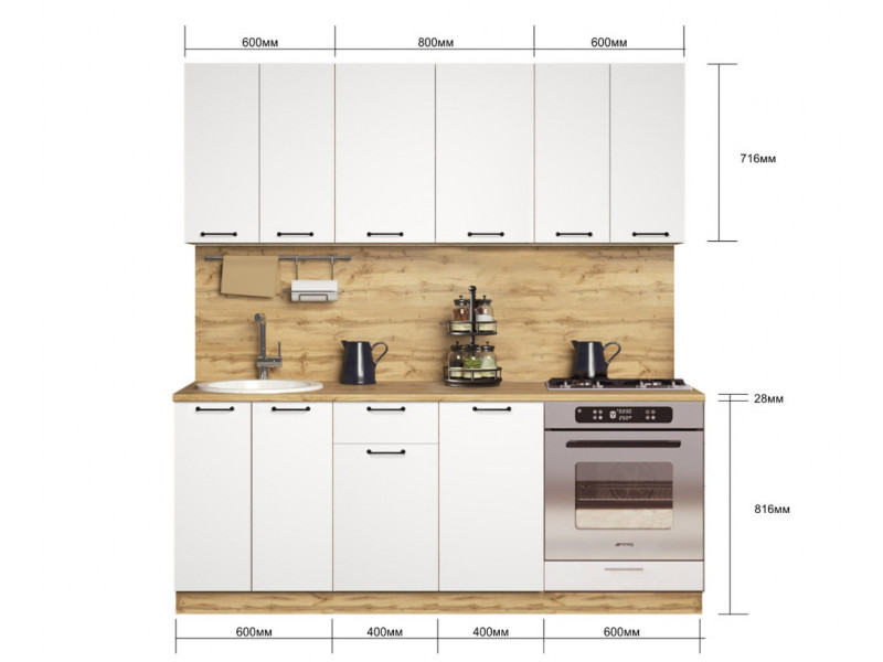 - Кухонный гарнитур Хелмер 2000 мм ЛДСП Вотан/Белый со шкафом под духовку