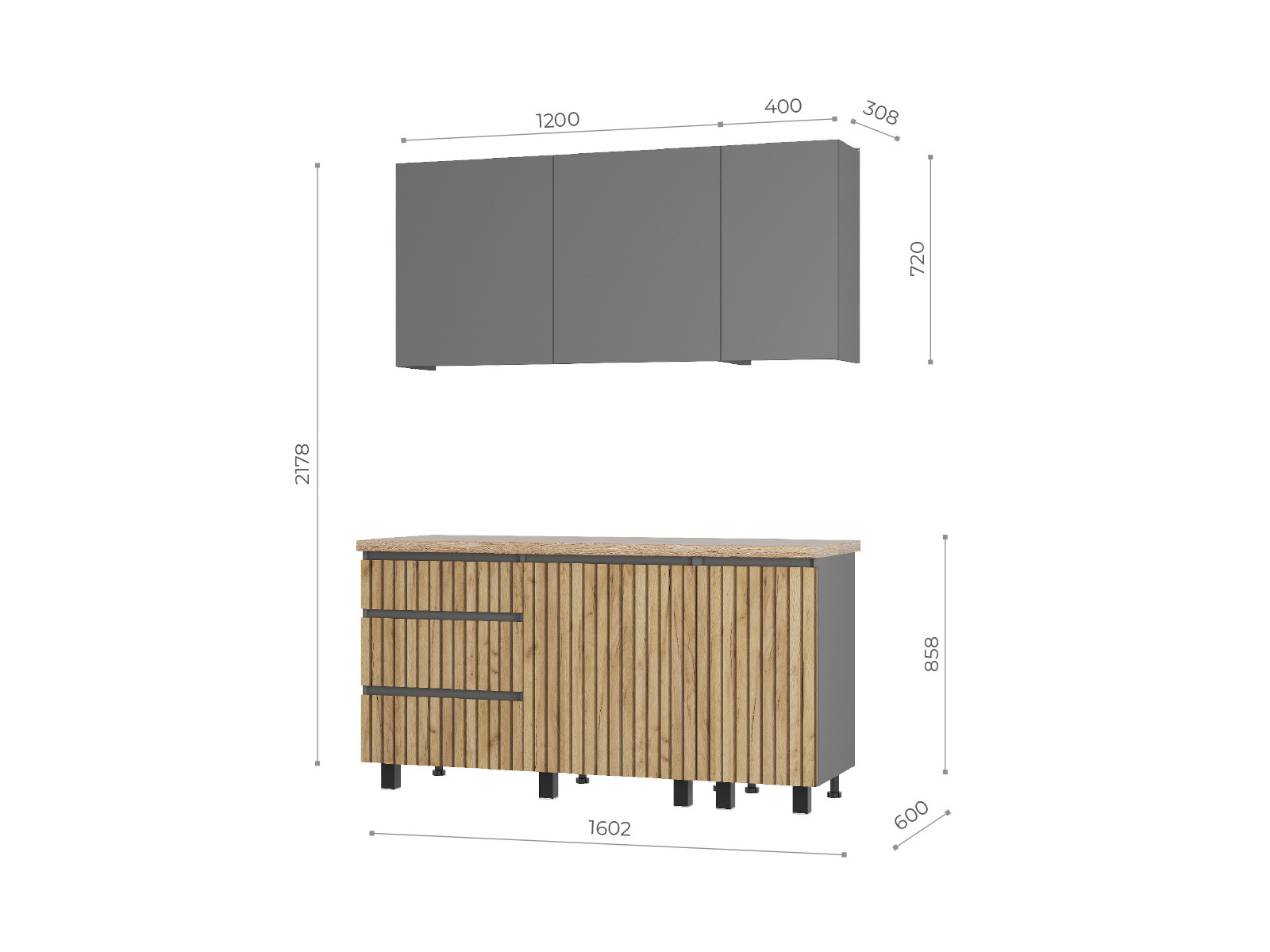 Цвет корпуса/цвет фасада: графит/графит, крафт с фотопечатью "рейки"