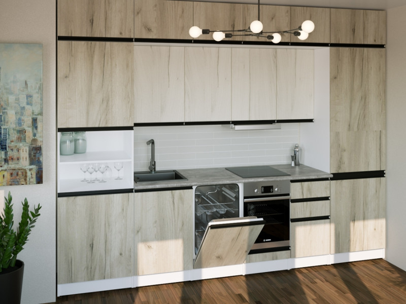 Мойка, смеситель, стеновая панель и посудосушитель в комплект гарнитура не входят.