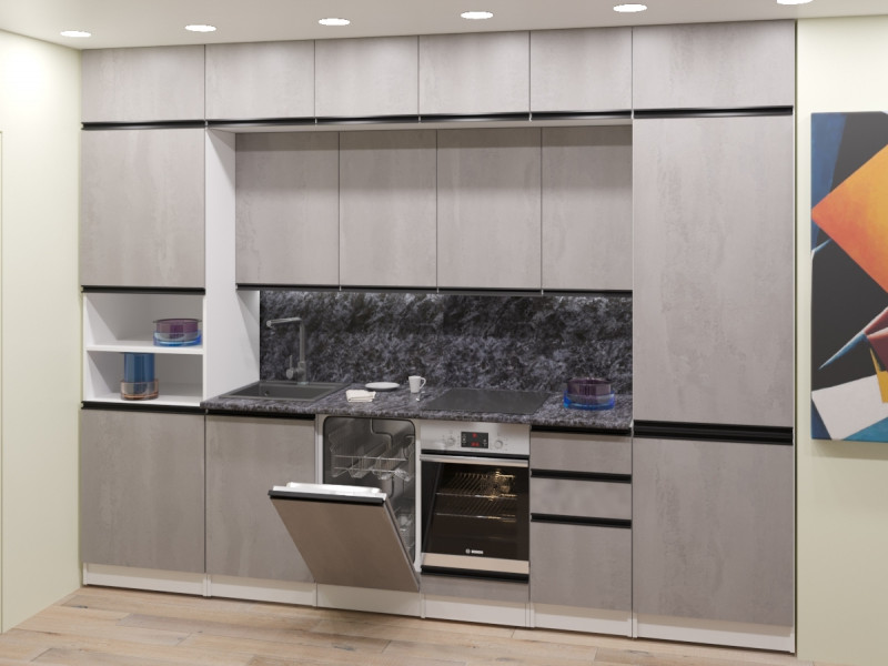 Мойка, смеситель, стеновая панель и посудосушитель в комплект гарнитура не входят.