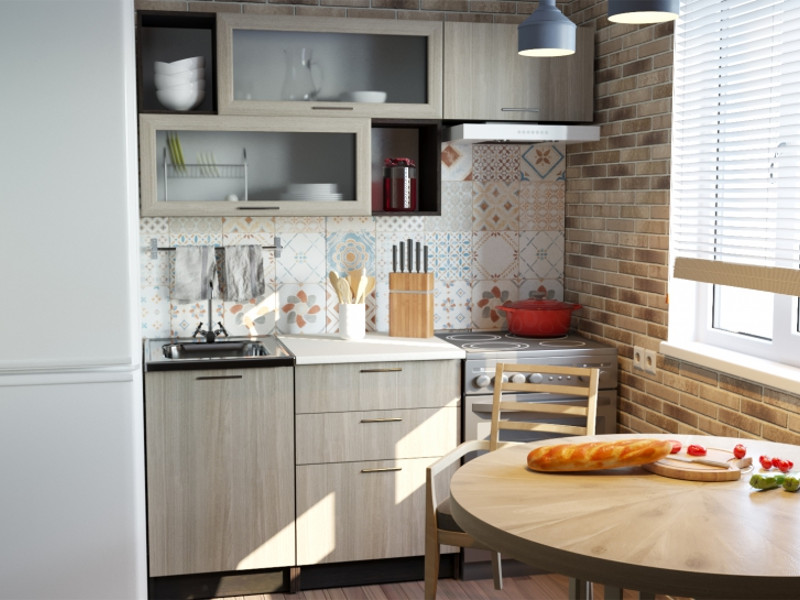 Мойка, смеситель, стеновая панель и посудосушитель в комплект гарнитура не входят.