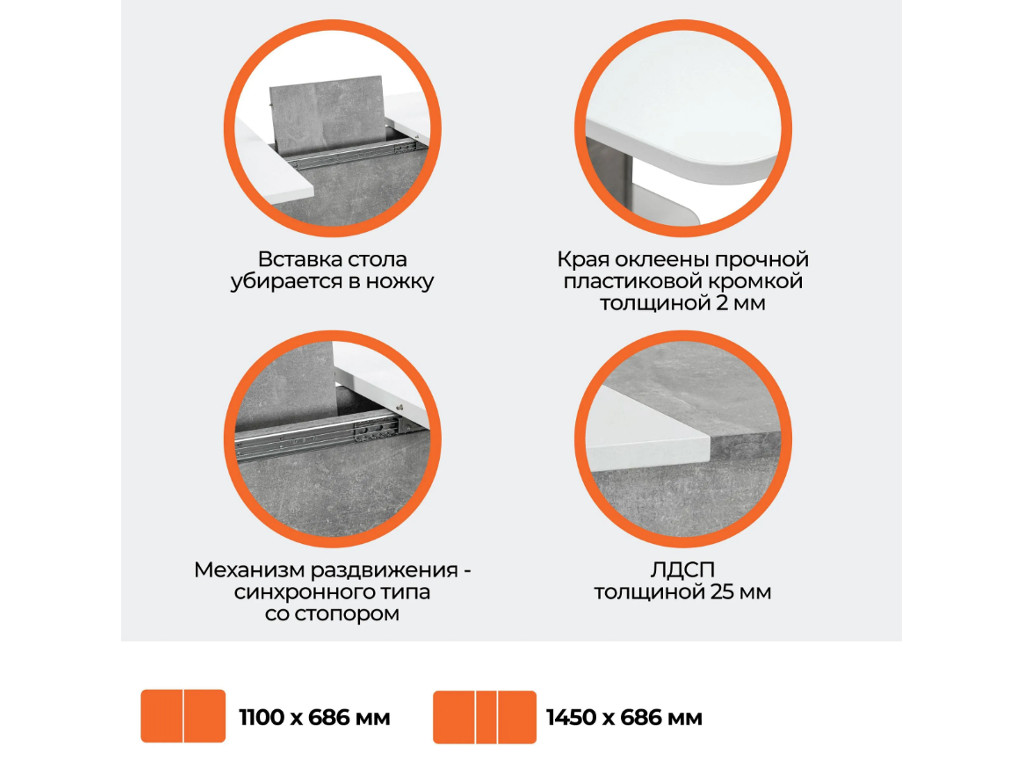 размеры позволяют комфортно разместить от четырех до шести человек. Вставка стола убирается в ножку. Края оклеены прочной пластиковой кромкой толщиной 2 мм. ЛДСП толщиной 25 мм. Механизм раздвижения - синхронного типа со стопором. Стол GENT отлично подойдёт для гостиной, для кухни или для загородного дома. Стол очень прост в сборке, инструкция по сборке прилагается.