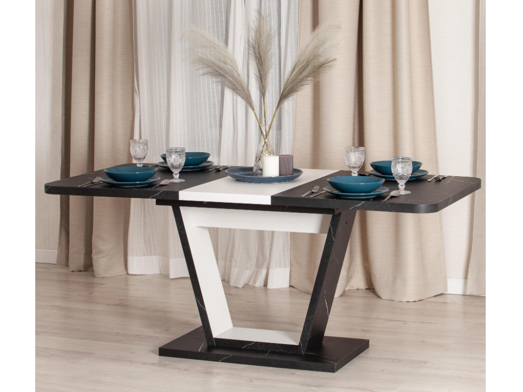 Размеры стола дают возможность с комфортом разместить от четырех до восьми человек. Вставка стола убирается горизонтально в подстолье. Края оклеены прочной пластиковой кромкой толщиной 2 мм. ЛДСП толщиной 18+18 мм. Механизм раздвижения - синхронного типа со стопором.