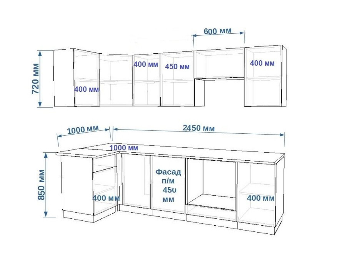 Кухонная мойка, стеновая панель, посудосушитель, планки для столешницы в комплект не входят.