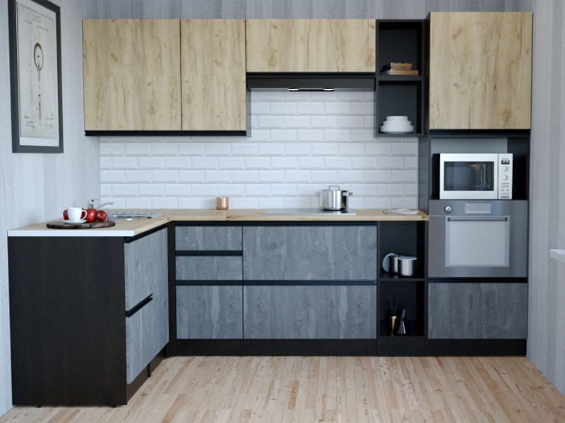 - Кухонный гарнитур Адажио мега прайм 1500х2700 мм