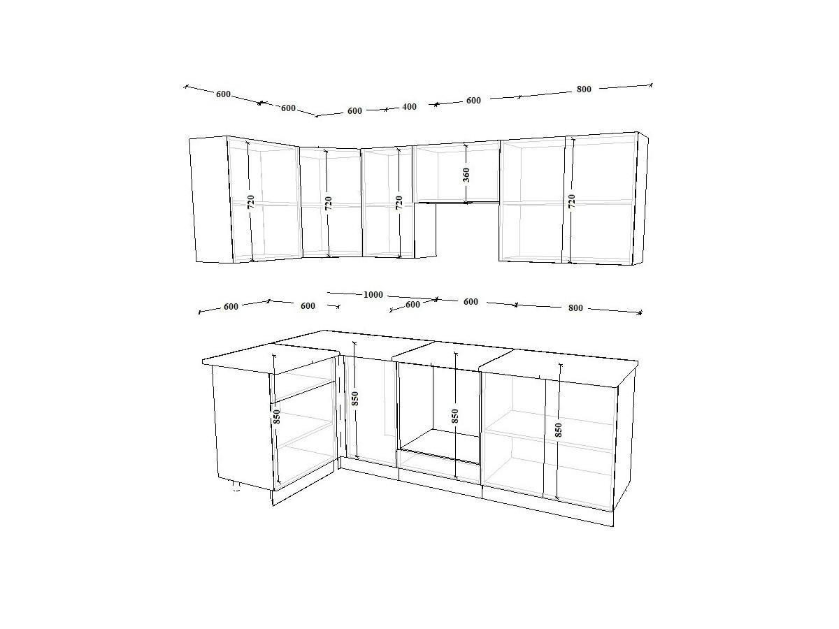 Кухонная мойка, стеновая панель, посудосушитель, планки для столешницы в комплект не входят.