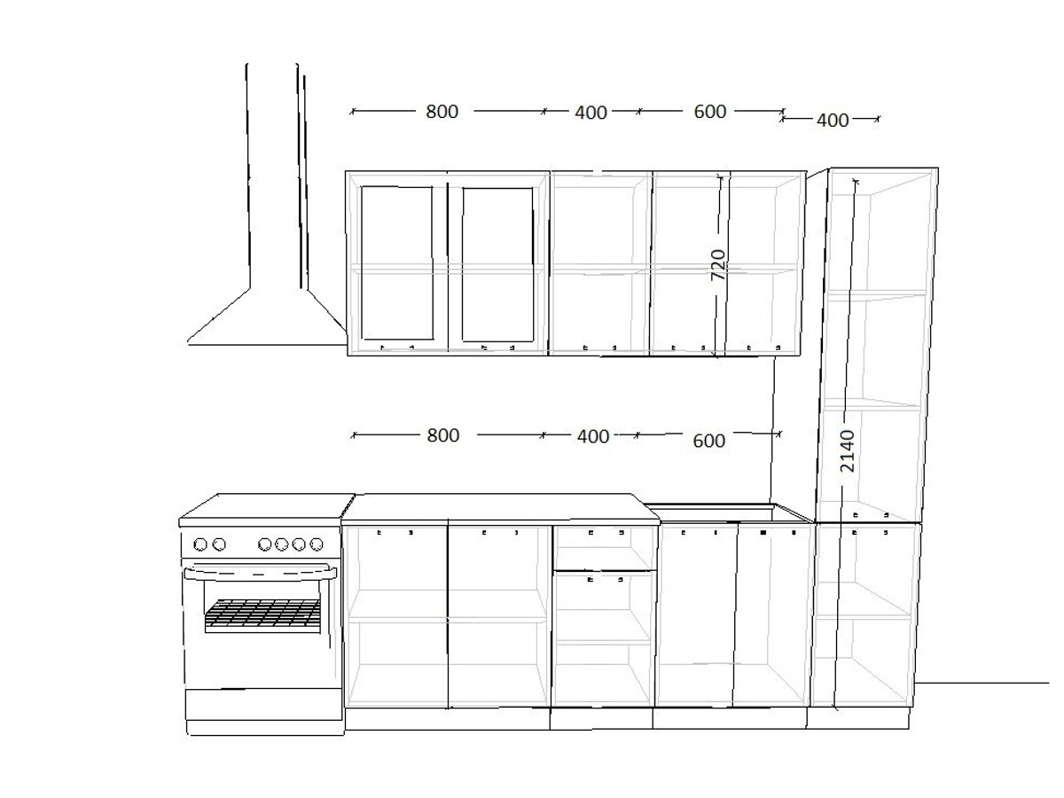 - высота верхних шкафов 720 мм