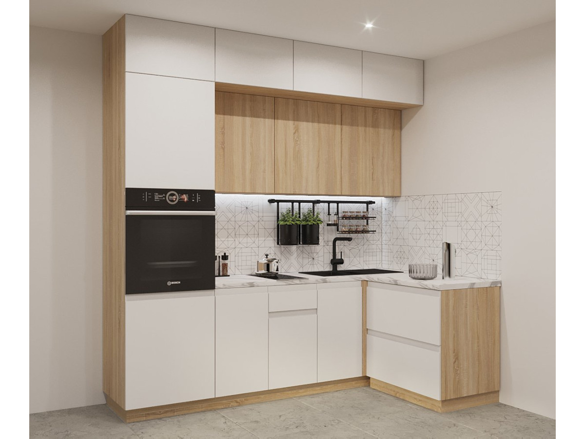 - Кухонный гарнитур арт 17 Лайн Тальк Дуб сонома 2400х1400 мм