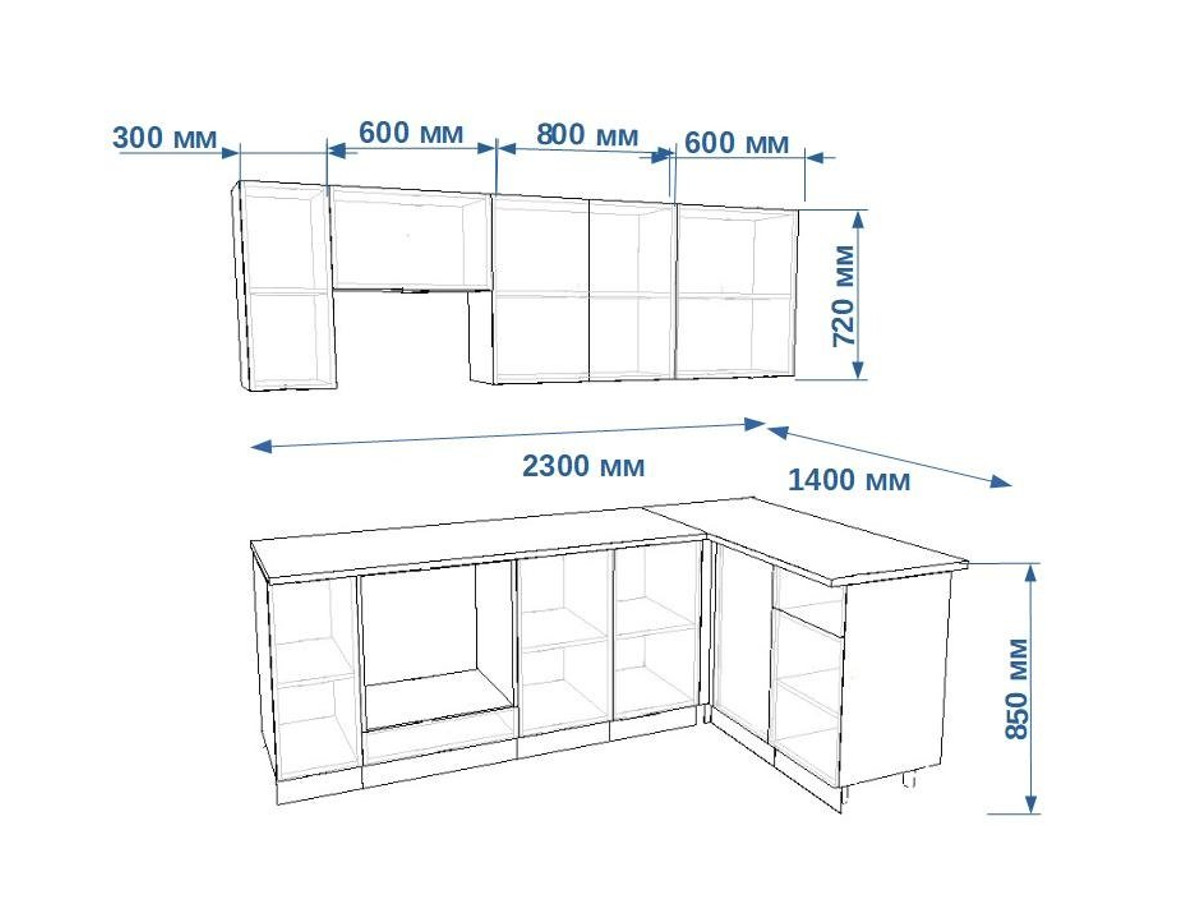 - высота верхних шкафов 720 мм