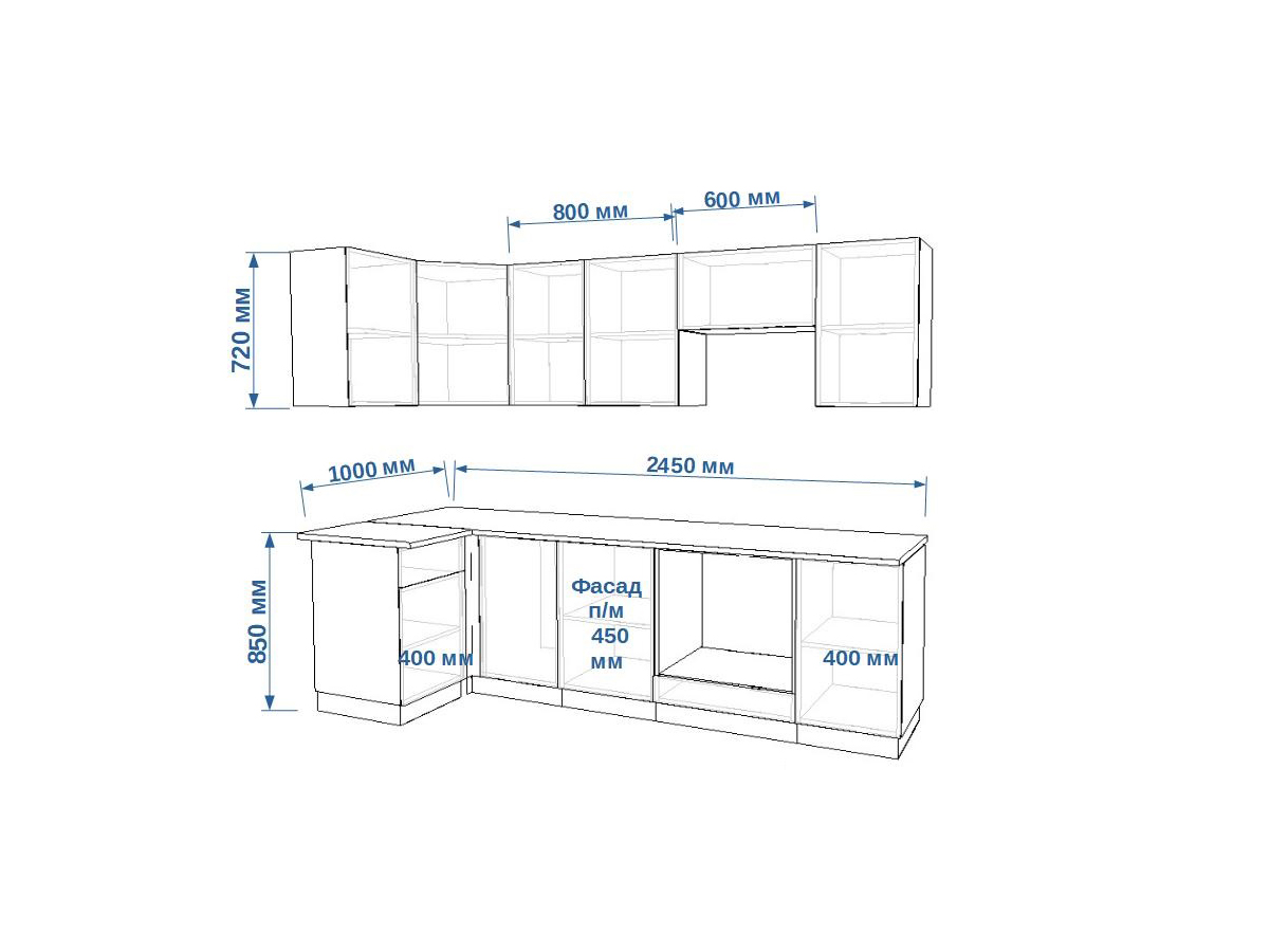 - высота верхних шкафов 720 мм