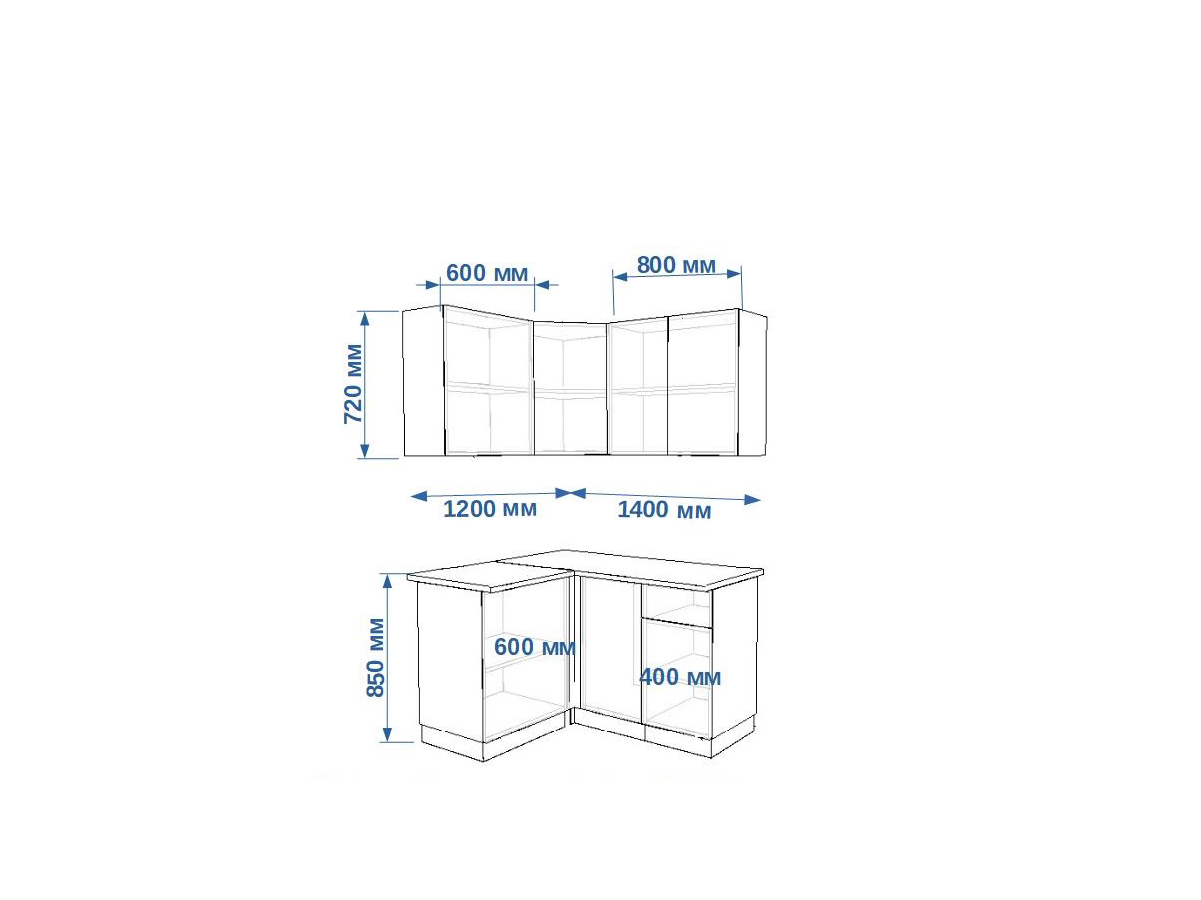 - высота верхних шкафов 720 мм