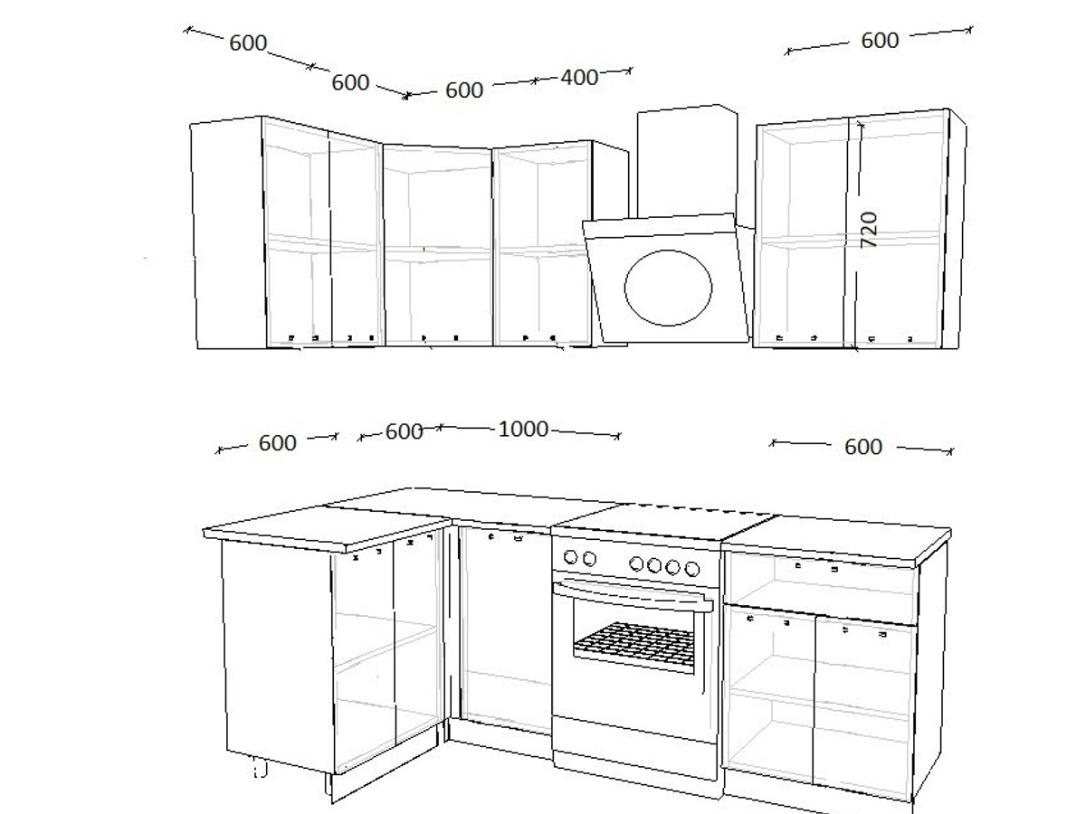 Кухонная мойка, стеновая панель, посудосушитель, планки для столешницы в комплект не входят.