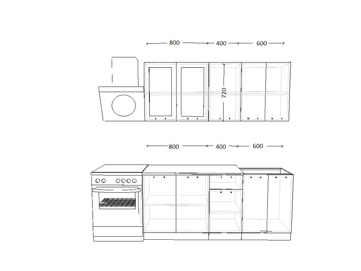 - высота верхних шкафов 720 мм