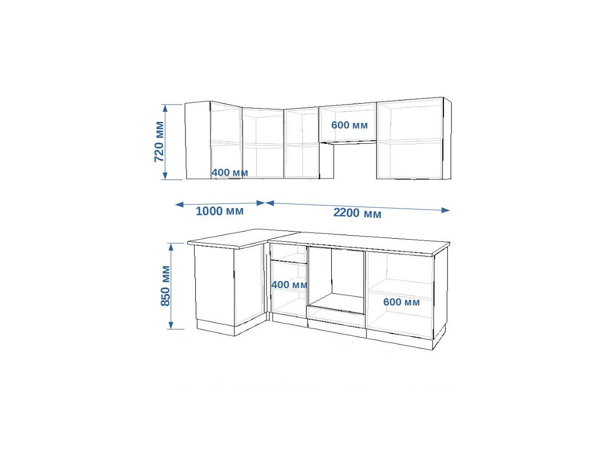 Кухонная мойка, стеновая панель, посудосушитель, планки для столешницы в комплект не входят.