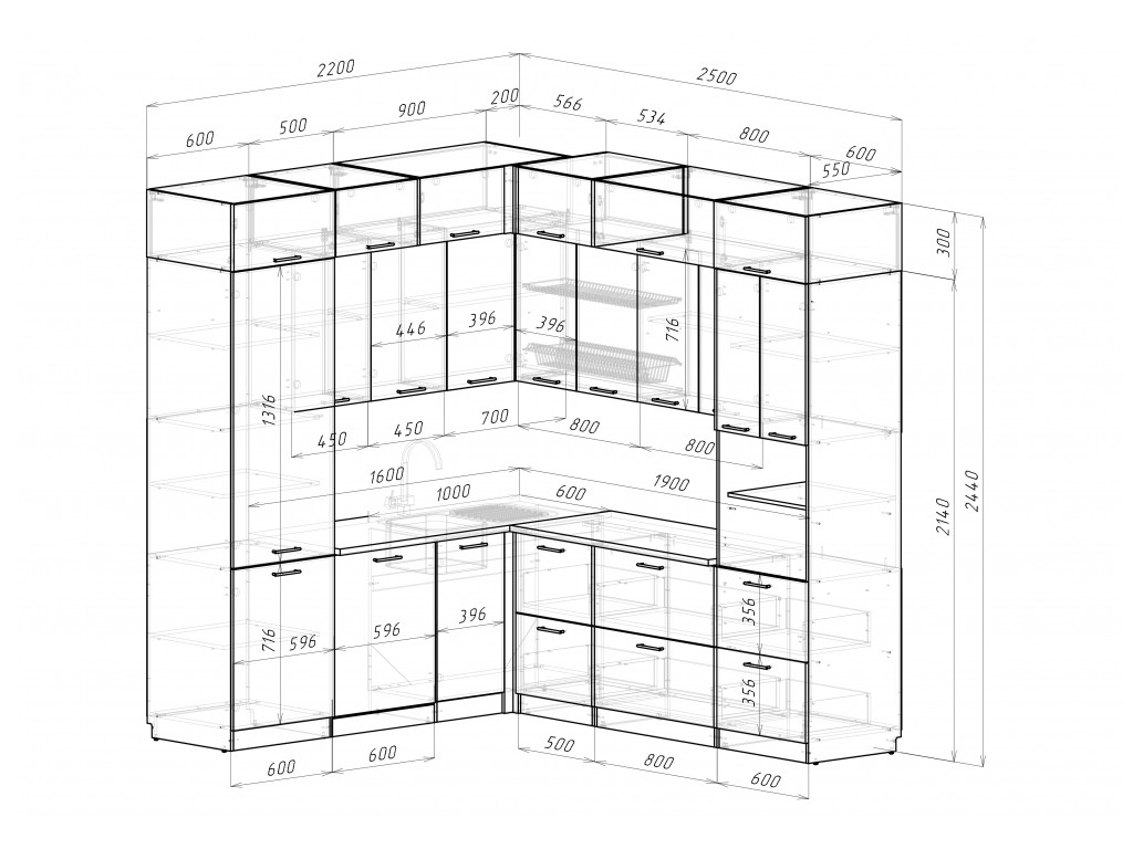 - Кухонный гарнитур Асая гранд прайм 2200х2500 мм