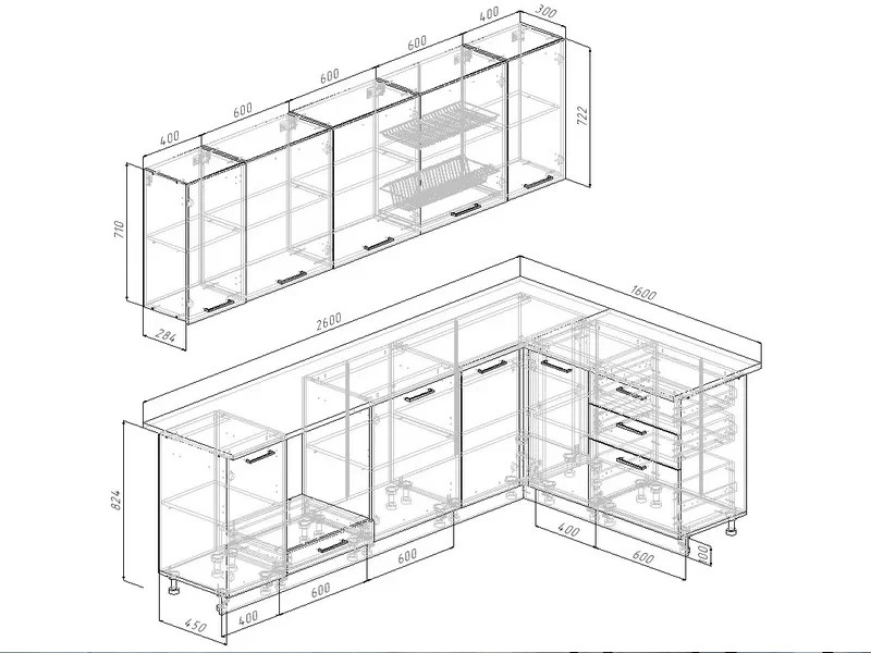 - Столешница: ЛДСП 26мм со скругленным краем (в пластике)