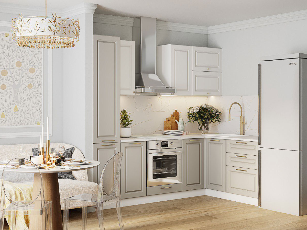 Кухонный гарнитур Кварц Грей Софт-Милк софт 2400х1600 мм