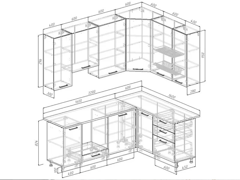 - Кухонный гарнитур Лада 2200х1600 (верх 950 мм)