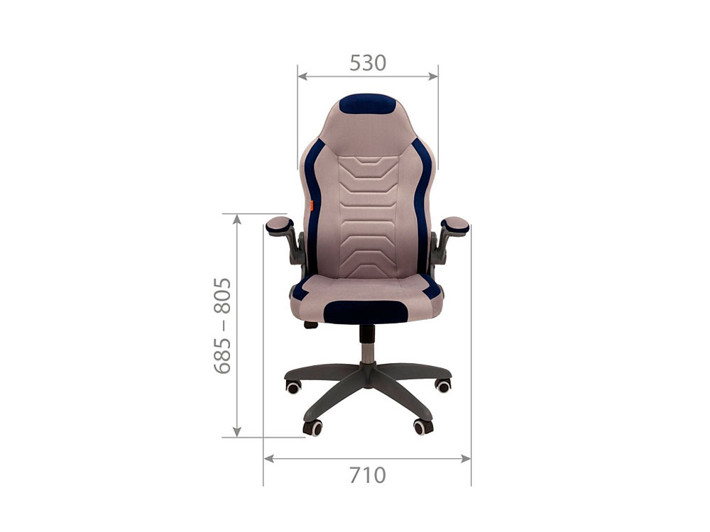 Кресло Chairman game 50 Россия серый/синий велюр Т53/Т82 пластик черный