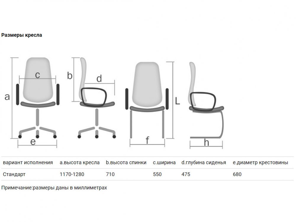 - высота кресла 1170-1280 мм