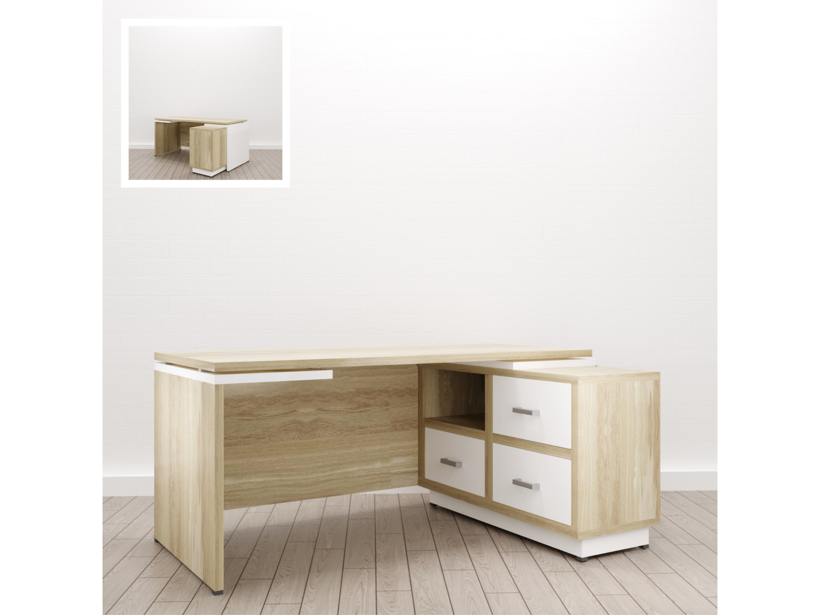 - Стол для руководителя Дизайн Правый (Е-5) Eclectic eco Дуб рокпайл-белый