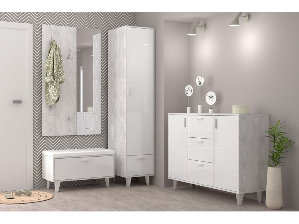 - Прихожая Эго бетон светлый/белый глянец