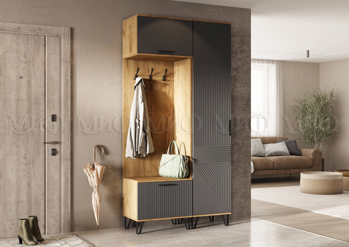 - Прихожая Флэш Браш Графит, Дуб Крафт