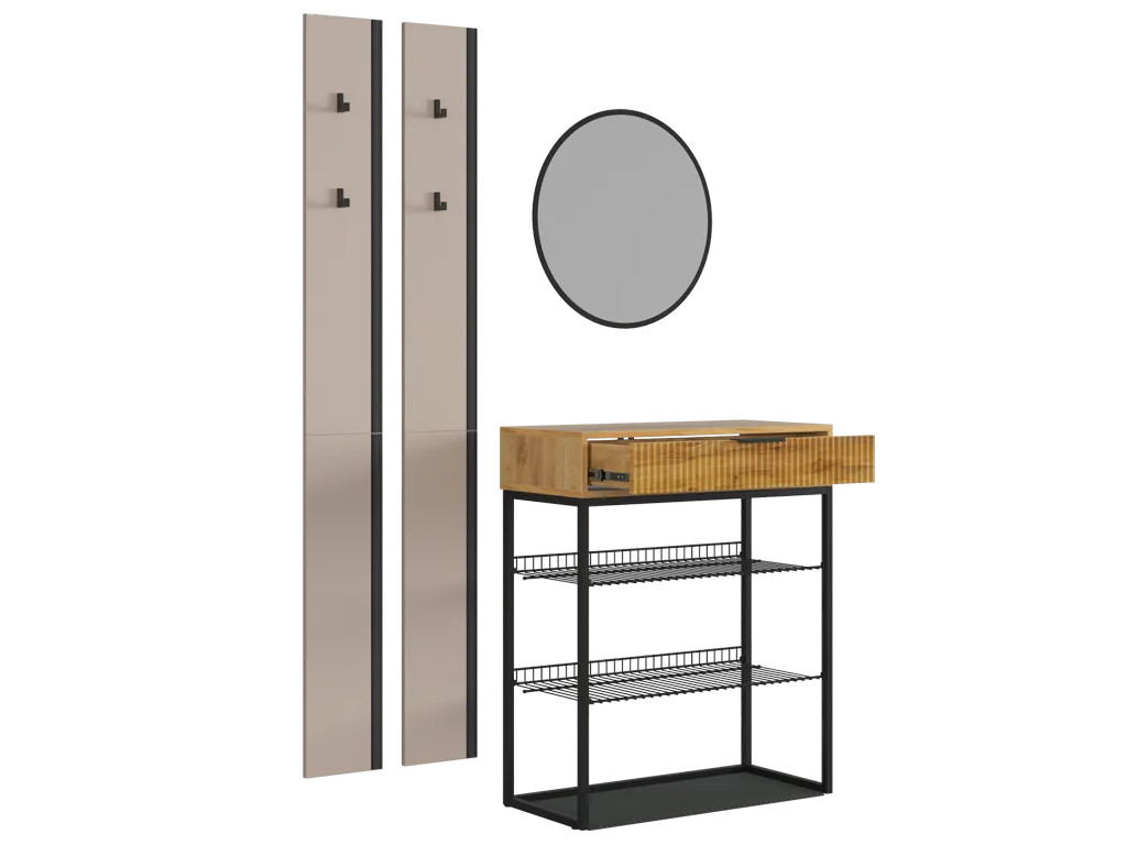- Прихожая Мебельсон К19 кашемир/дуб крафт золотой/черный муар