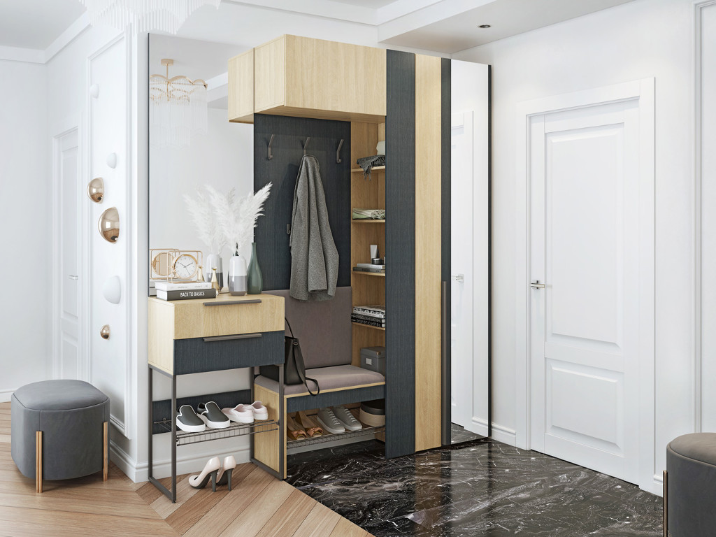 - В нижней нише имеется сетчатая полка для обуви, окрашенная в графитовый цвет