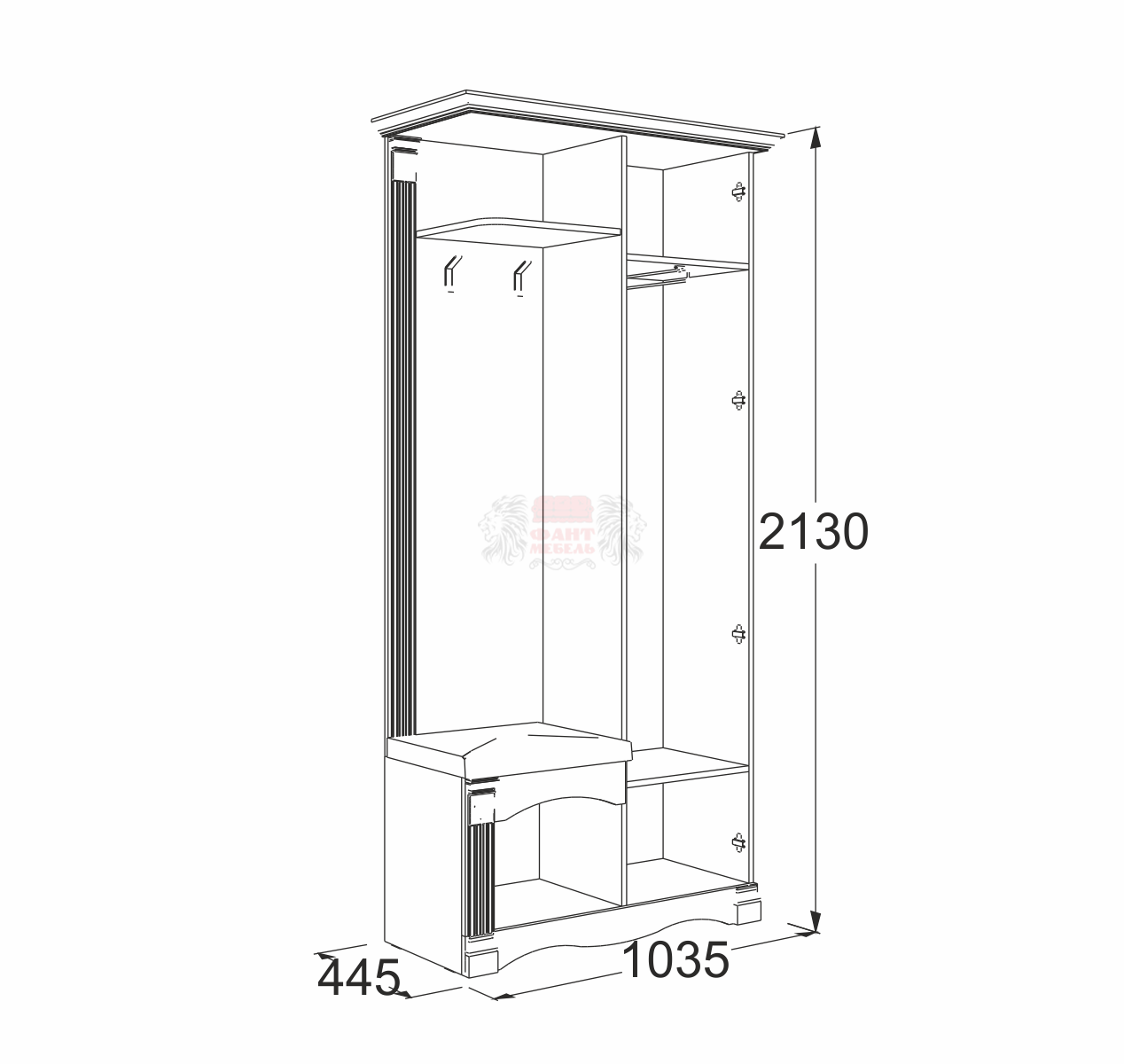 габариты (ВхШхГ): 2130х1035х445 мм мм