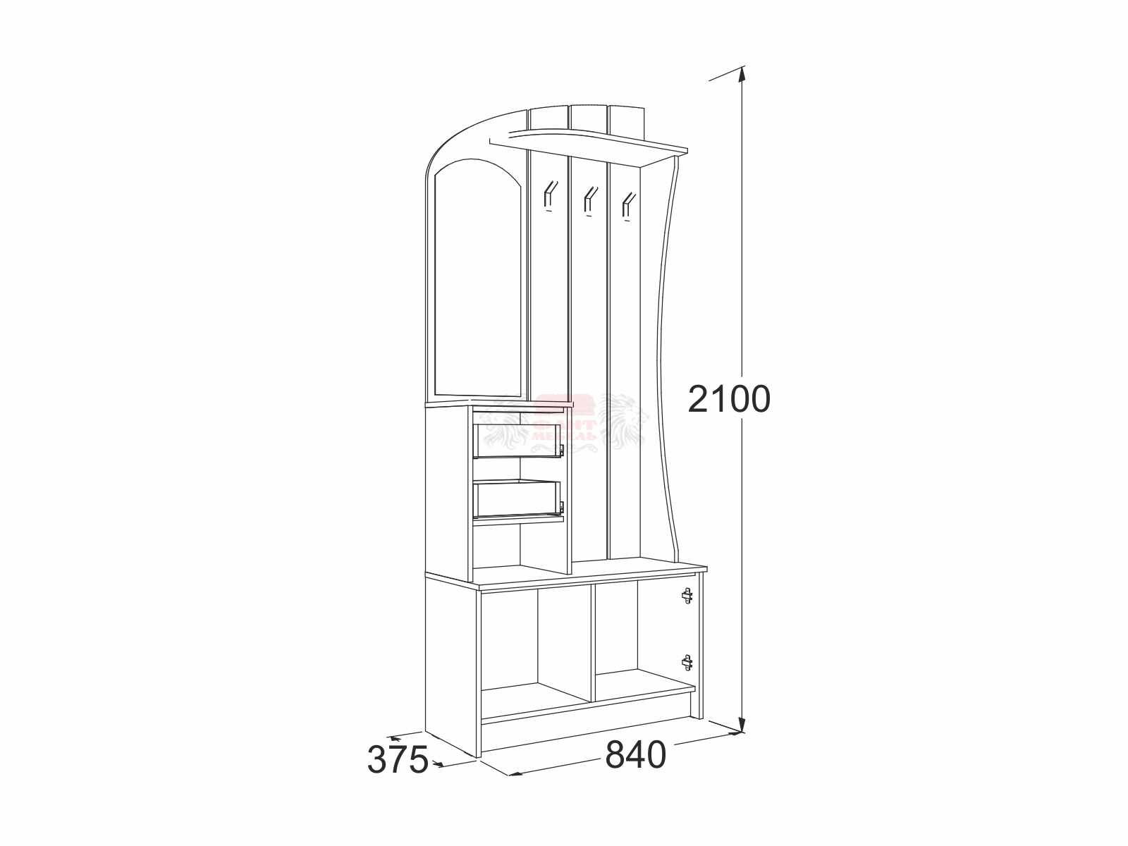 габариты (ВхШхГ): 2100х840х375 мм