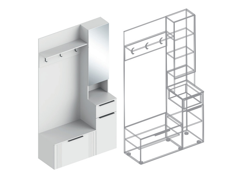 - Фасад: МДФ с фрезеровкой, плёнка ПВХ Силк Маус толщина 320-350 микрон МКМ (с праймером)