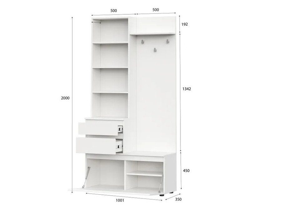 Размер Ш*В*Г, мм: 1001х2000х350 мм