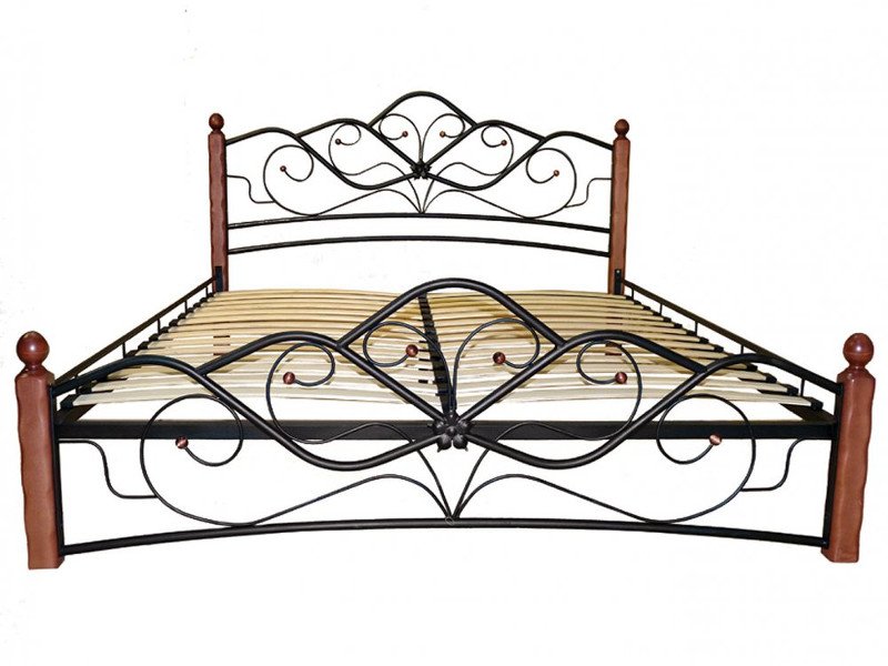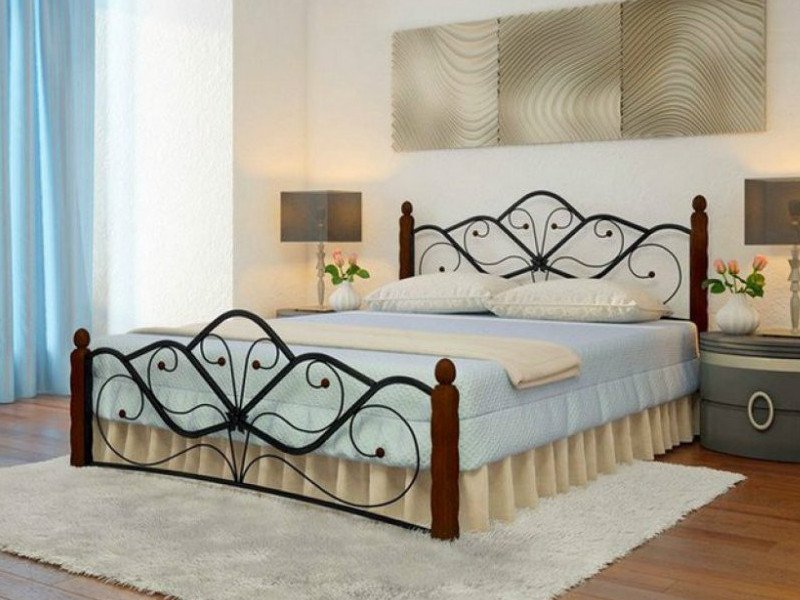 Оригинальная Кровать выполнена с кованым узором на спинке и ножками из массива березы