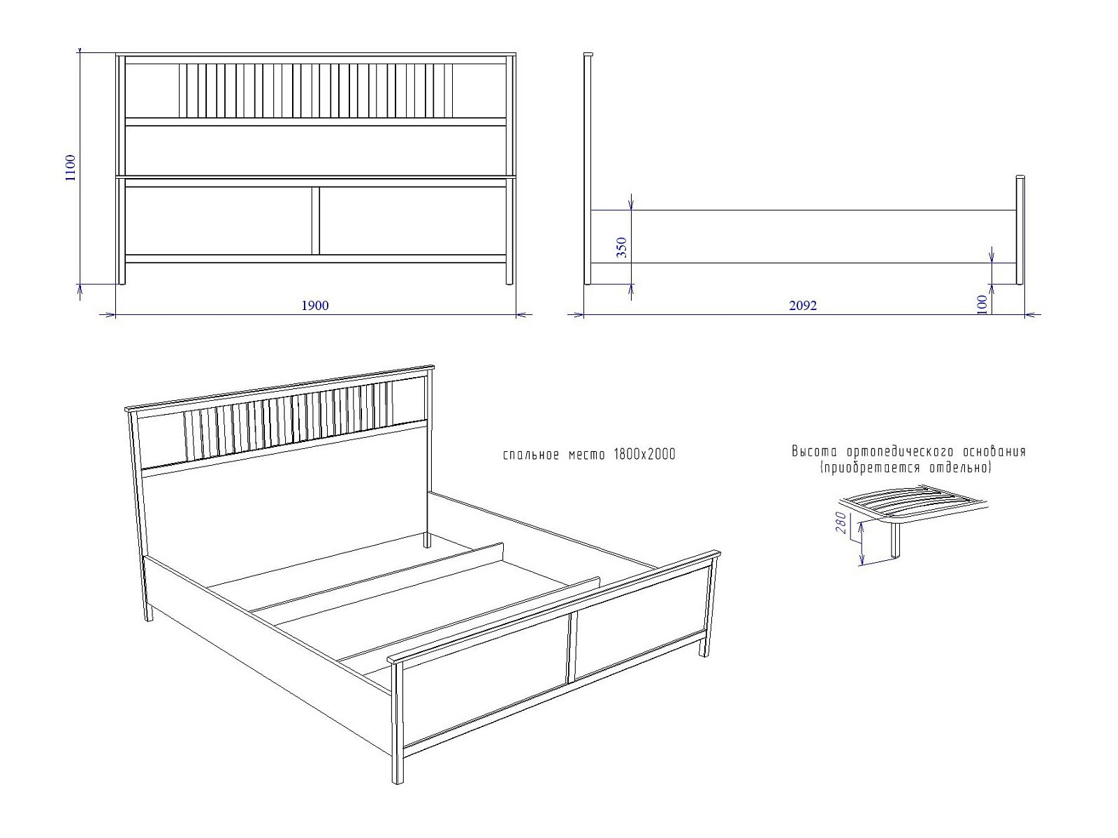 Спальное место: 1800*2000 мм