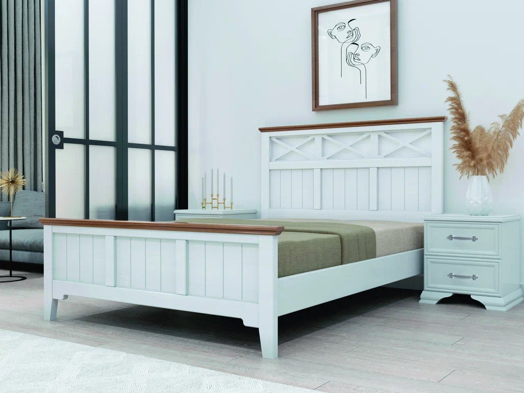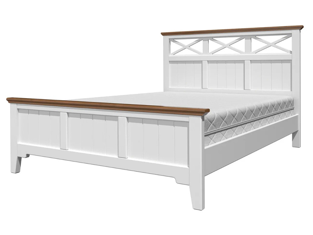 - Кровать Грация-5 1400 Белый античный с карнизом Дуб коньяк