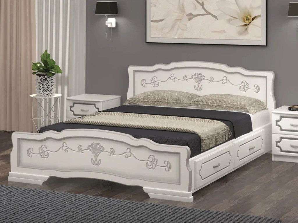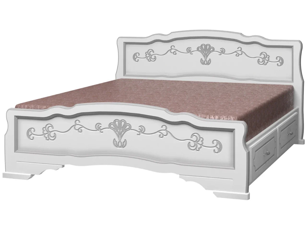 - Кровать Карина-6 с 2-мя ящиками 1600 Белый жемчуг