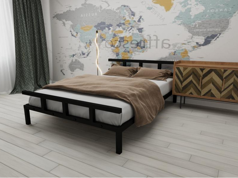 Кровать выполнена в минималистичном стиле. Выдержанный лофт.