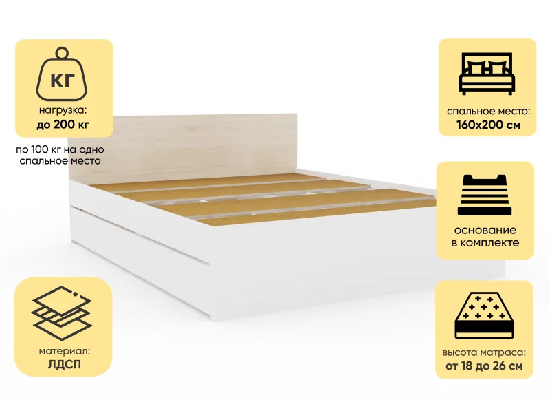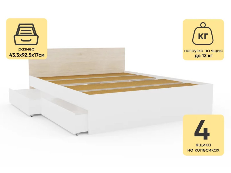 - Кровать Монблан с ящиками 160х200 см Белый Шагрень