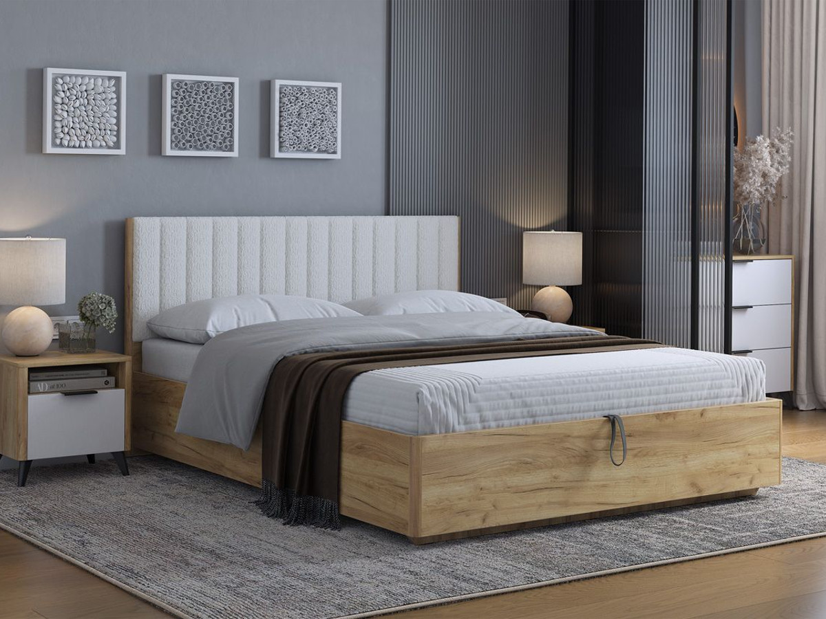 - Кровать с подъемным механизмом Юлия 140х200 см дуб крафт золотой