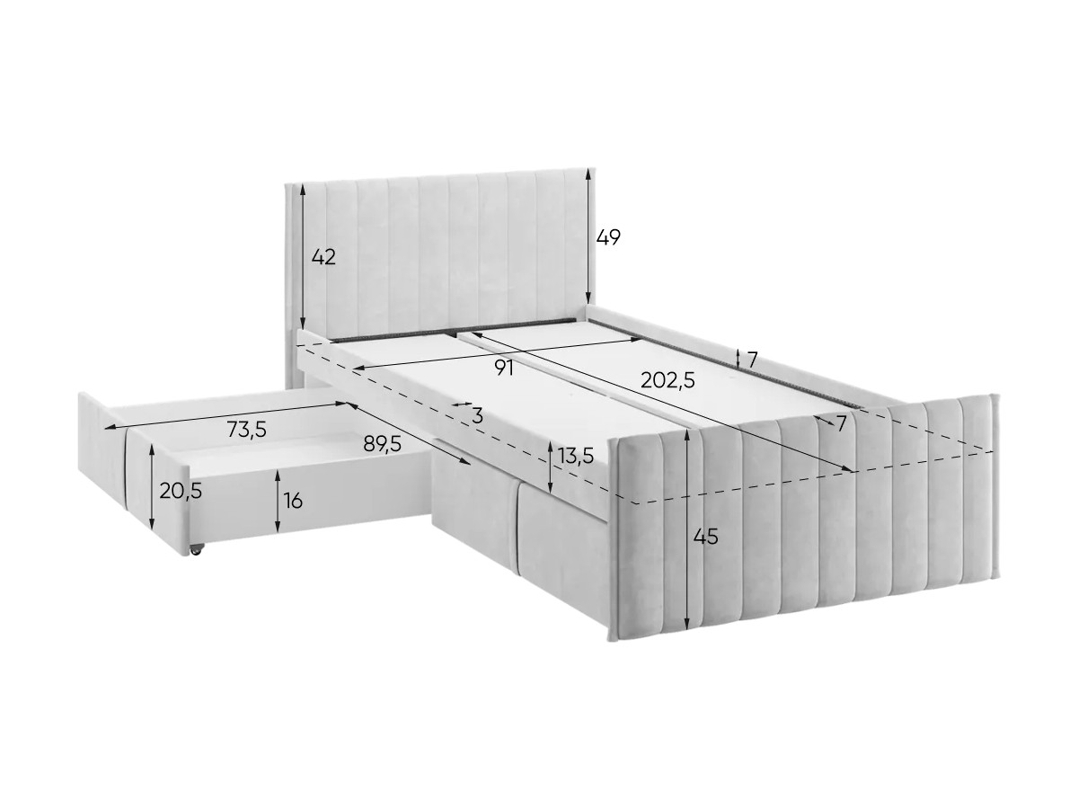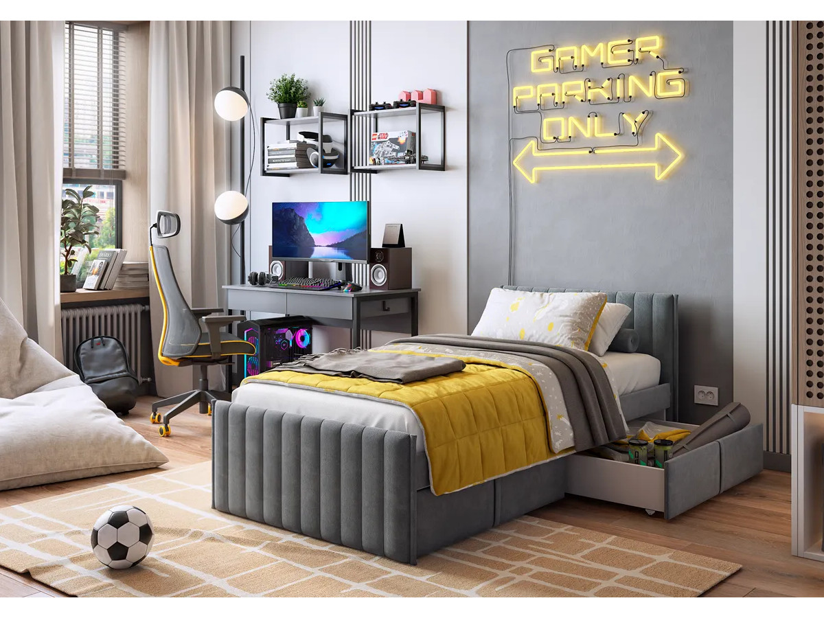 Кровать с ящиками Твикс цвет велюра графит