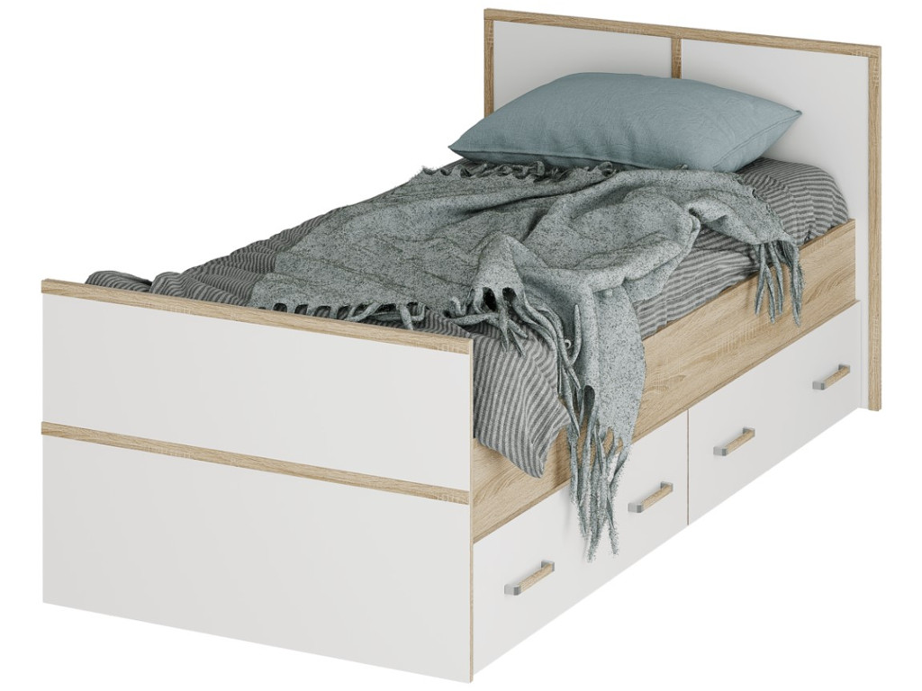 - Кровать Сакура 0.9 LIGHT с проложками Дуб сонома-Белый