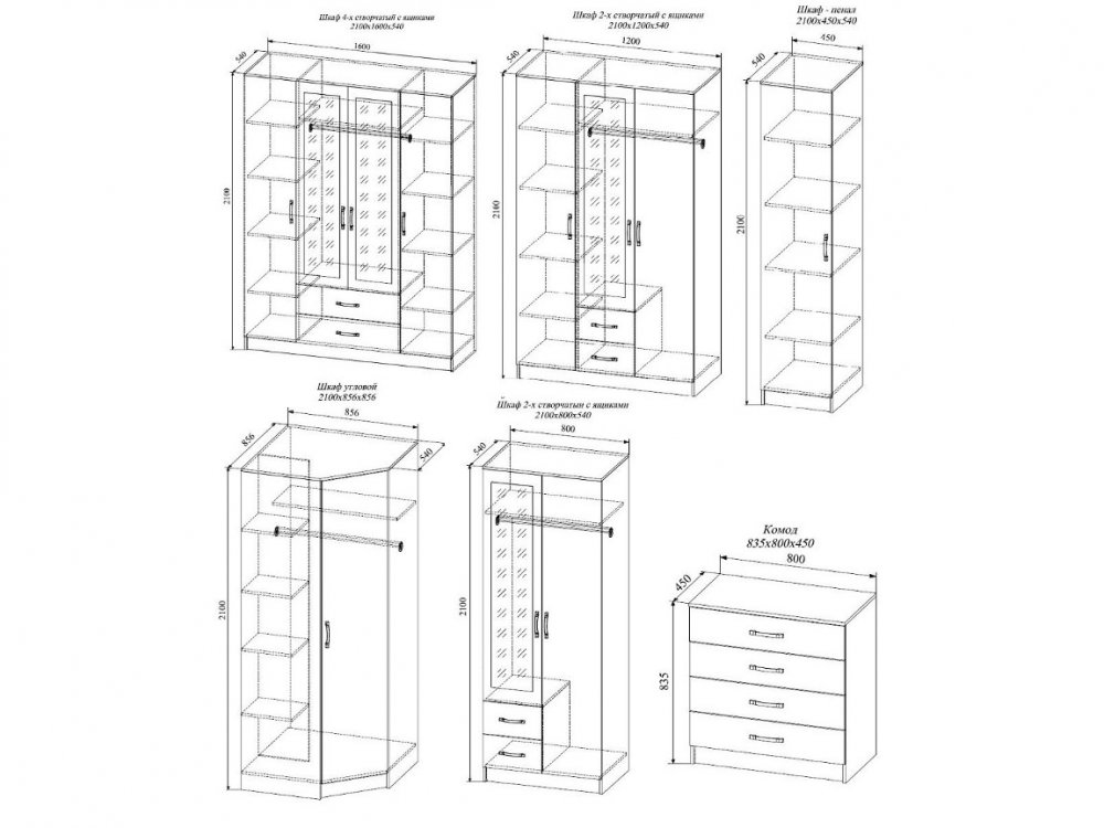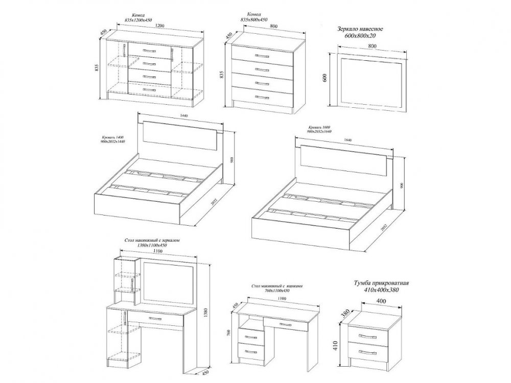 Модули к спальне (Ш*Г*В):