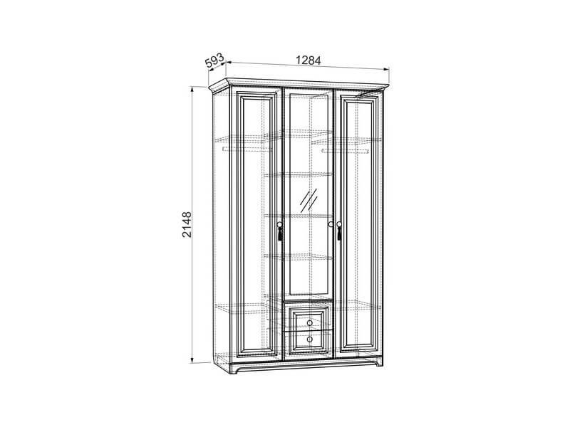 - Шкаф 3-створчатый ш=1284 мм, г=593 мм, в=2148 мм - 55440 руб