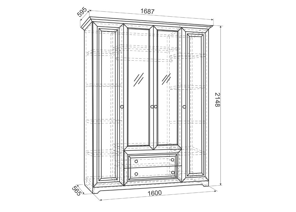 - Шкаф 4-створчатый ш=1687 мм, г=595 мм, в=2148 мм - 70440 руб