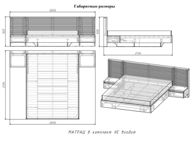 Габариты: Д.2656 х В.920 х Г.2134 мм;