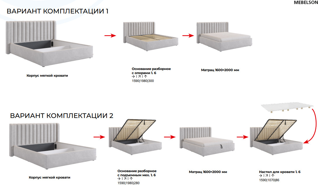 - Каркас кровати Ева 160х200 см, (1885х2130х1120)